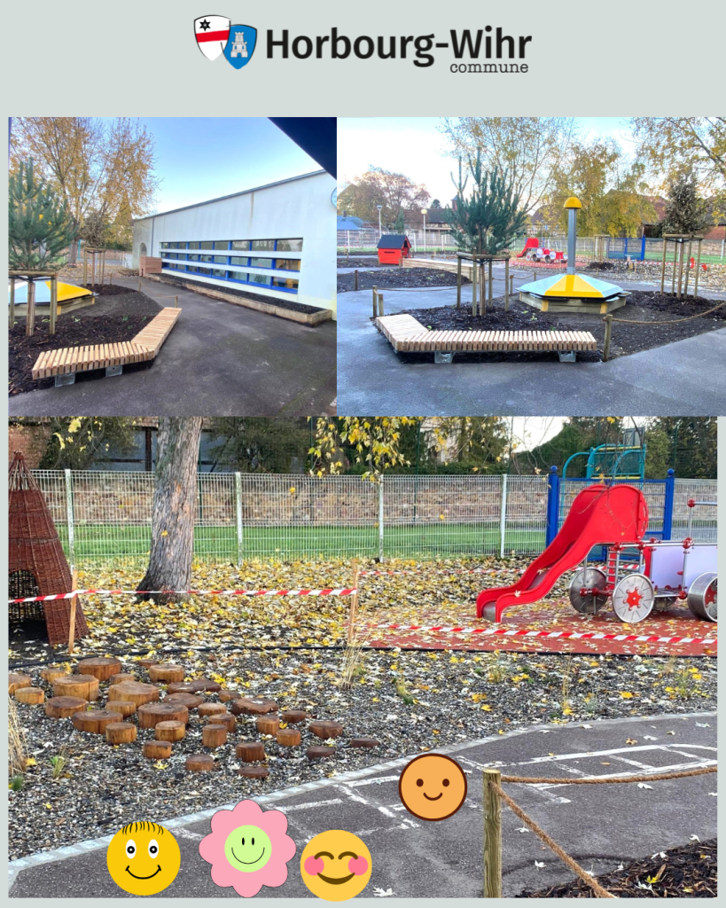Le bloc sanitaire a notamment été réaménagé pour répondre aux besoins des maternelles, et la cour de récréation a bénéficié d’un réaménagement intégrant un projet de désimperméabilisation des sols, favorisant ainsi un espace de jeu plus écologique et durable.