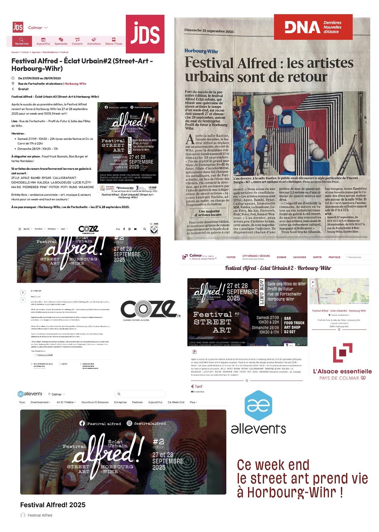 Après le succès de sa première édition, le Festival Alfred revient en force à Horbourg-Wihr les 27 et 28 septembre 2025 pour un week-end 100% street art !