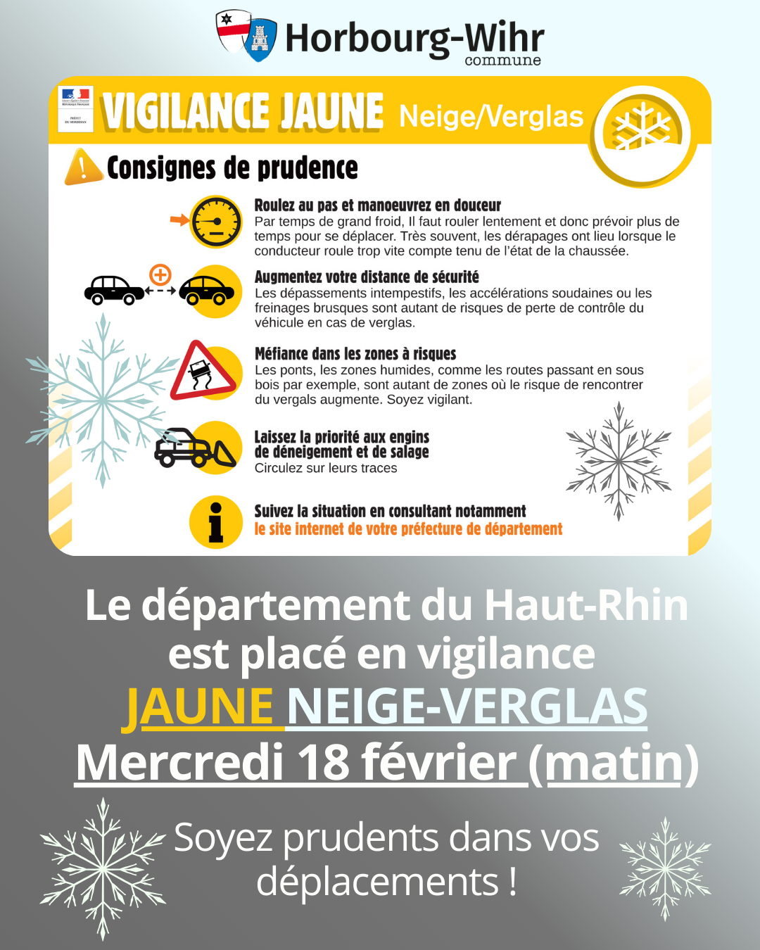 Vigilance JAUNE NEIGE/VERGLAS : Mercredi 18 février (matin)